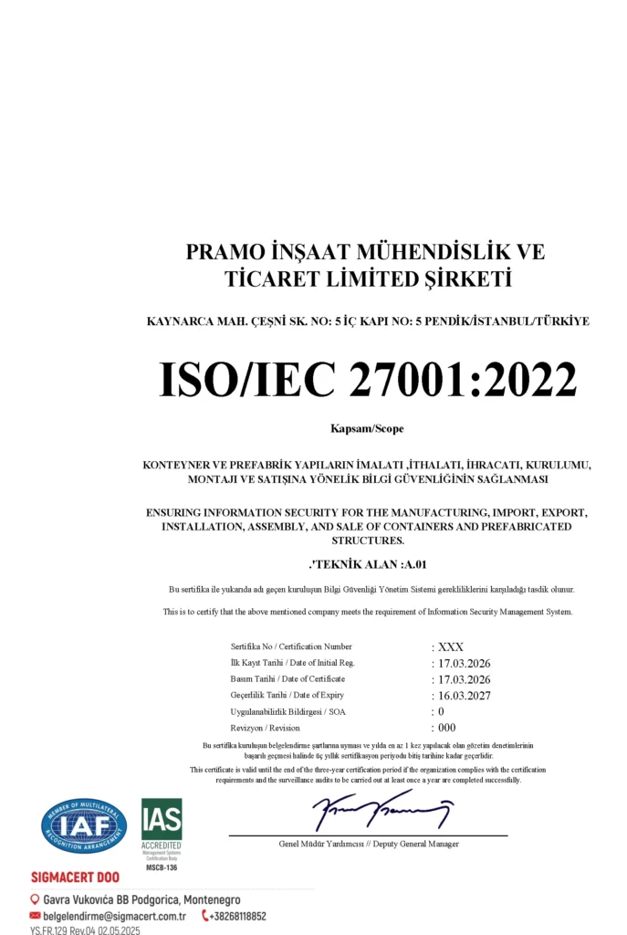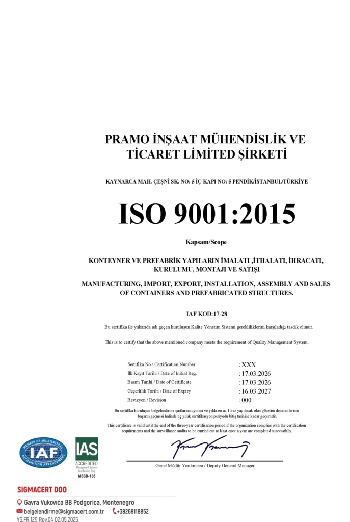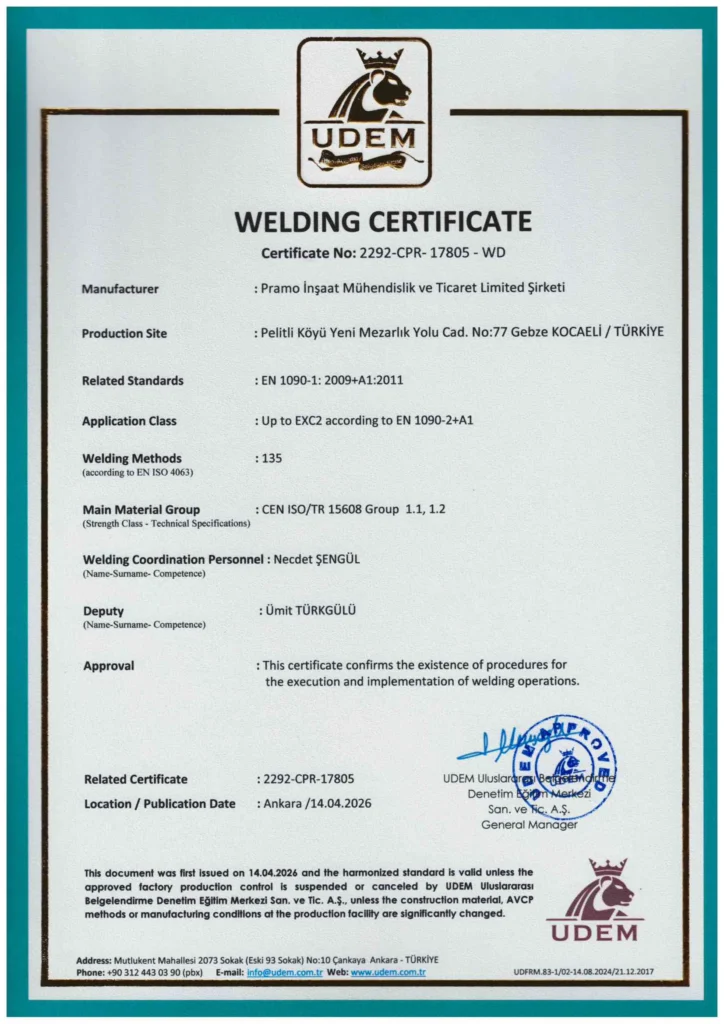 لا تقتصر جودة منتجات Pramo على التصميم والإنتاج المتميزين فحسب، بل تستند أيضًا إلى نهج معتمد. تعكس شهادات Pramo ووثائق الجودة الواردة في هذه الصفحة التزامنا بالمعايير المعترف بها، وتؤكد أن عملياتنا — من المواد والتصنيع ومراقبة الجودة والسلامة — تخضع للمراجعة بانتظام. هدفنا هو توفير مساحات معيشية موثوقة ومتينة تتميز بجودة ثابتة في كل مشروع.