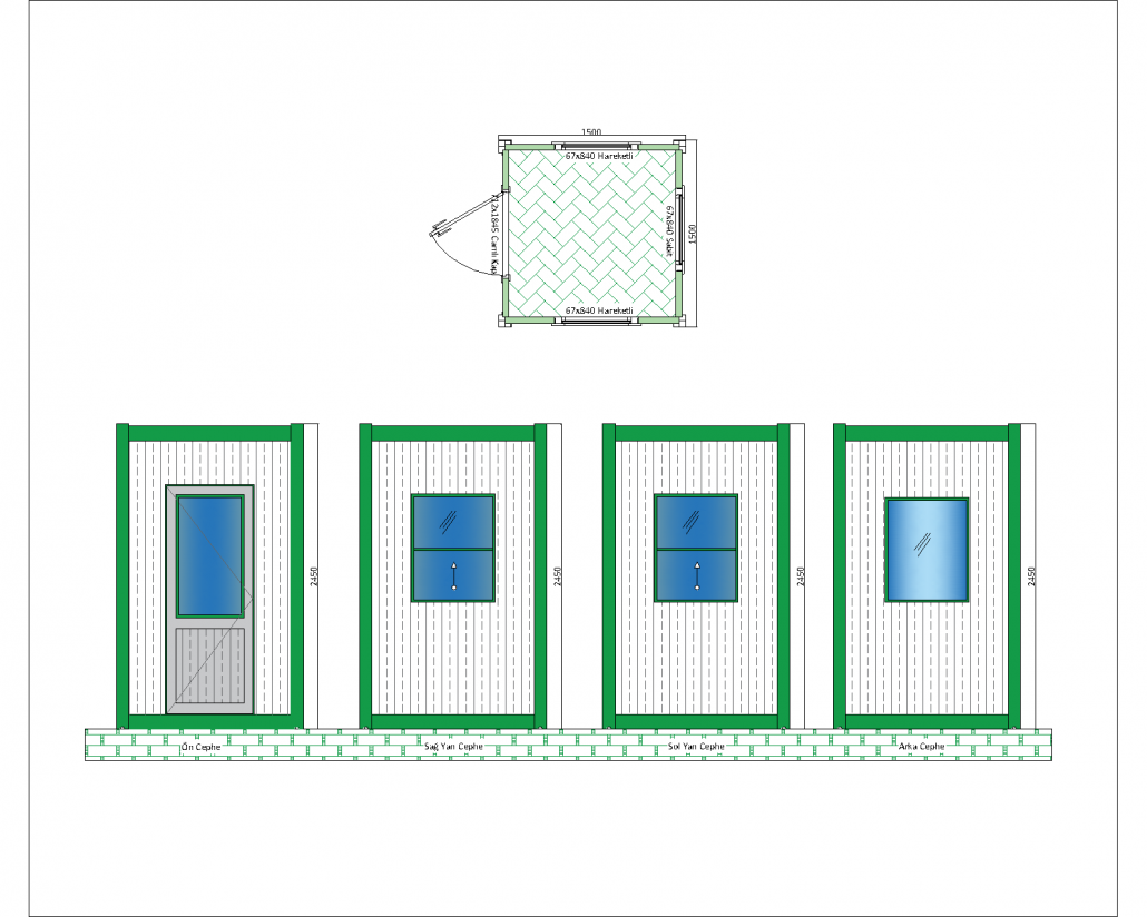 Bu panel kabin, kompakt ve işlevsel yapısı ile dikkat çeken bir modeldir. 1500 mm x 1500 mm taban ölçülerine ve 2540 mm yüksekliğe sahip olan bu kabin, özellikle şantiye alanları, güvenlik noktaları ve geçici ofis ihtiyaçları için idealdir. Geniş bir kullanım yelpazesine hitap eden kabin, dayanıklı hafif çelik konstrüksiyon ile üretilmiştir ve zorlu hava koşullarına karşı yüksek direnç gösterir.