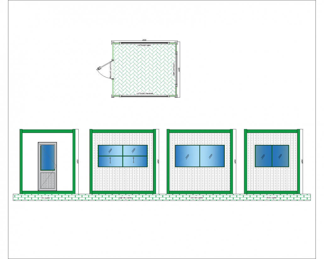 Bu panel kabin, geniş iç alanı ve modern tasarımıyla ofis, güvenlik noktası veya geçici çalışma alanı olarak kullanılmak üzere idealdir. 3000 mm x 2300 mm boyutlarındaki bu yapı, kullanıcılarına ferah bir çalışma ortamı sunar. Ön cephedeki camlı kapı ve geniş pencere seçenekleri, iç mekana bol miktarda doğal ışık girmesini sağlar, bu da hem enerji tasarrufu sunar hem de ortamın aydınlık ve havadar kalmasına yardımcı olur.