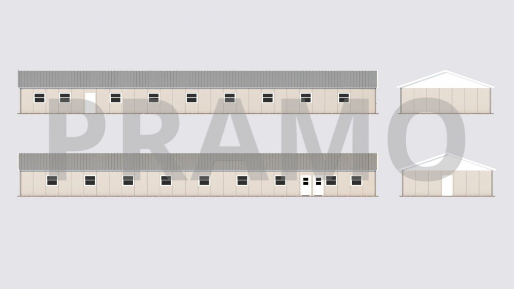 Bu prefabrik yemekhane binası, geniş kapasiteli yapısıyla 250 kişilik yemek alanı sunar. Toplam 317 m² alana sahip bu yapı, büyük ölçekli iş sahaları ve kamplar için ideal bir çözümdür. Yemekhanenin 260 m²’lik geniş oturma alanı, ferah ve düzenli bir şekilde yerleştirilmiş masalarla konforlu bir yemek deneyimi sağlar. Çalışanların rahatça hareket edebileceği alan sunan bu bölüm, toplu yemek ihtiyaçlarını en iyi şekilde karşılayacak şekilde tasarlanmıştır.