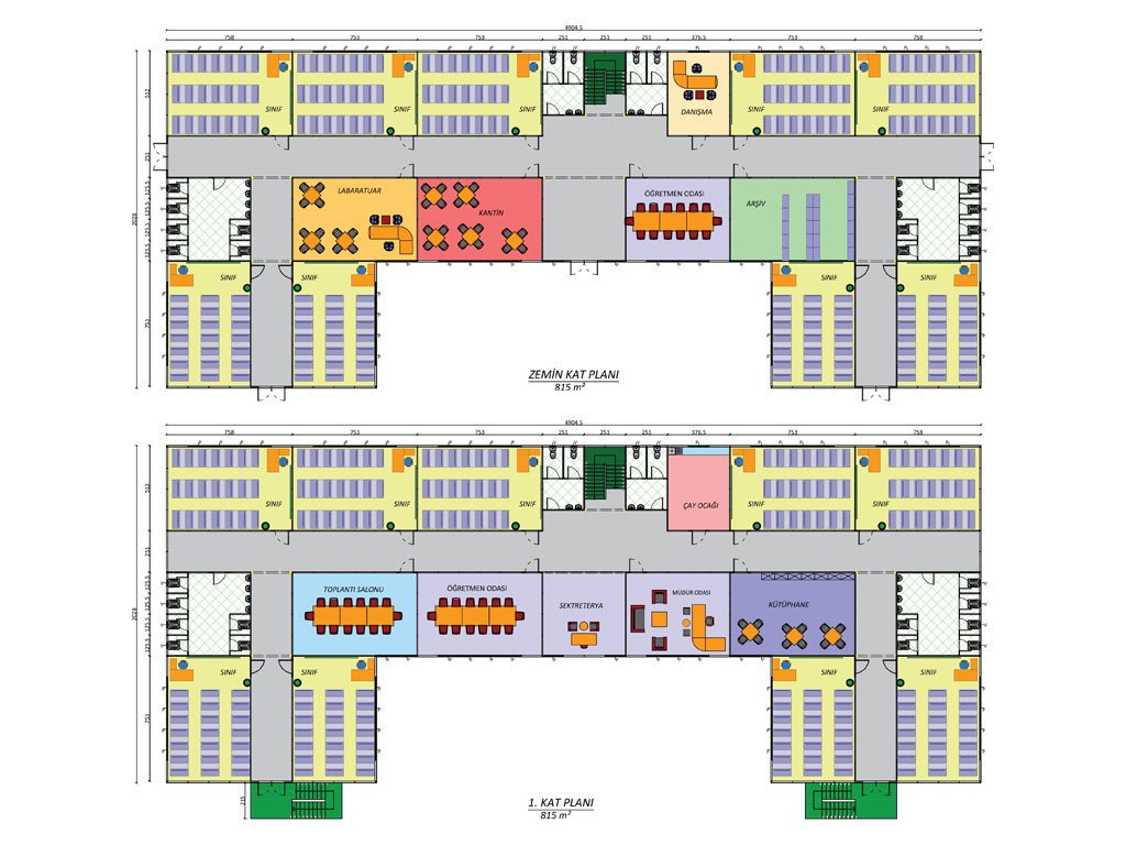 مبنى مدرسة مسبق الصنع من طابقين بمساحة 1630 مترًا مربعًا