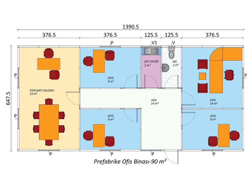 مبنى مكاتب من طابق واحد بمساحة 90 مترًا مربعًا