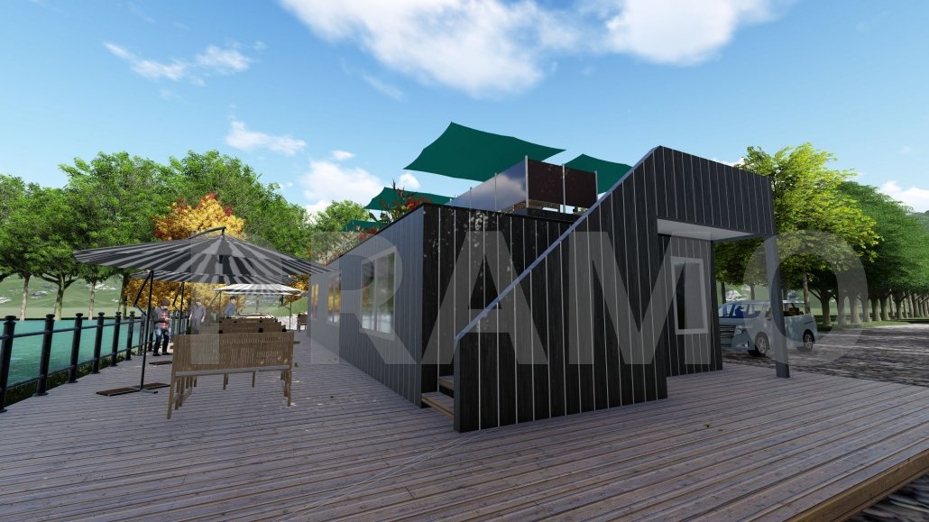 مقهى فولاذي بمساحة 185 متر مربع