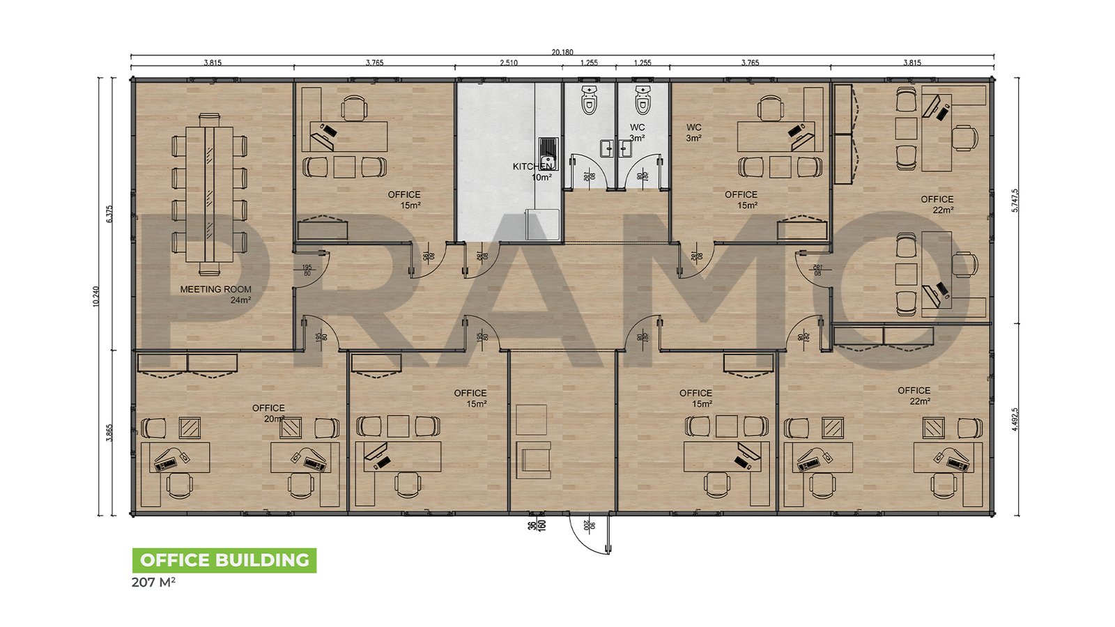 مكتب جاهز بمساحة 207 متر مربع
