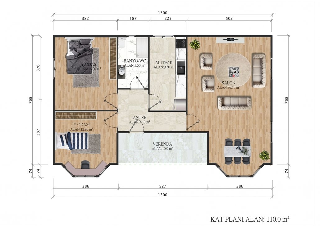110 متر مربع من المساكن الجاهزة المكونة من طابق واحد