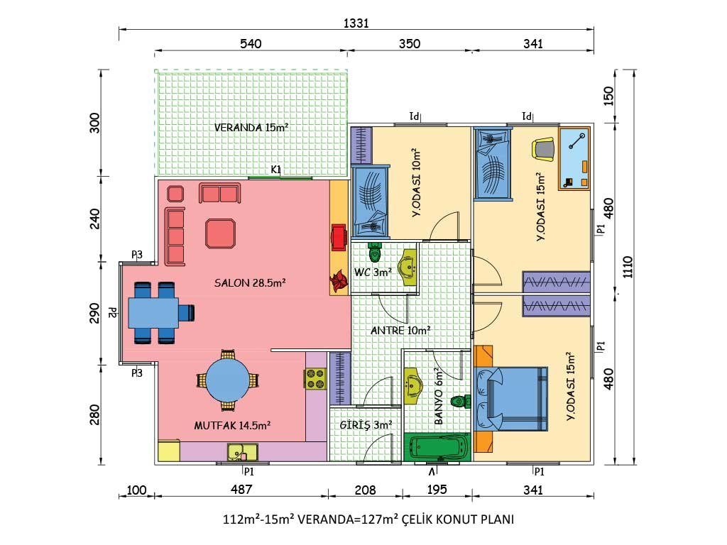 127 متر مربع من المساكن الفولاذية المكونة من طابق واحد