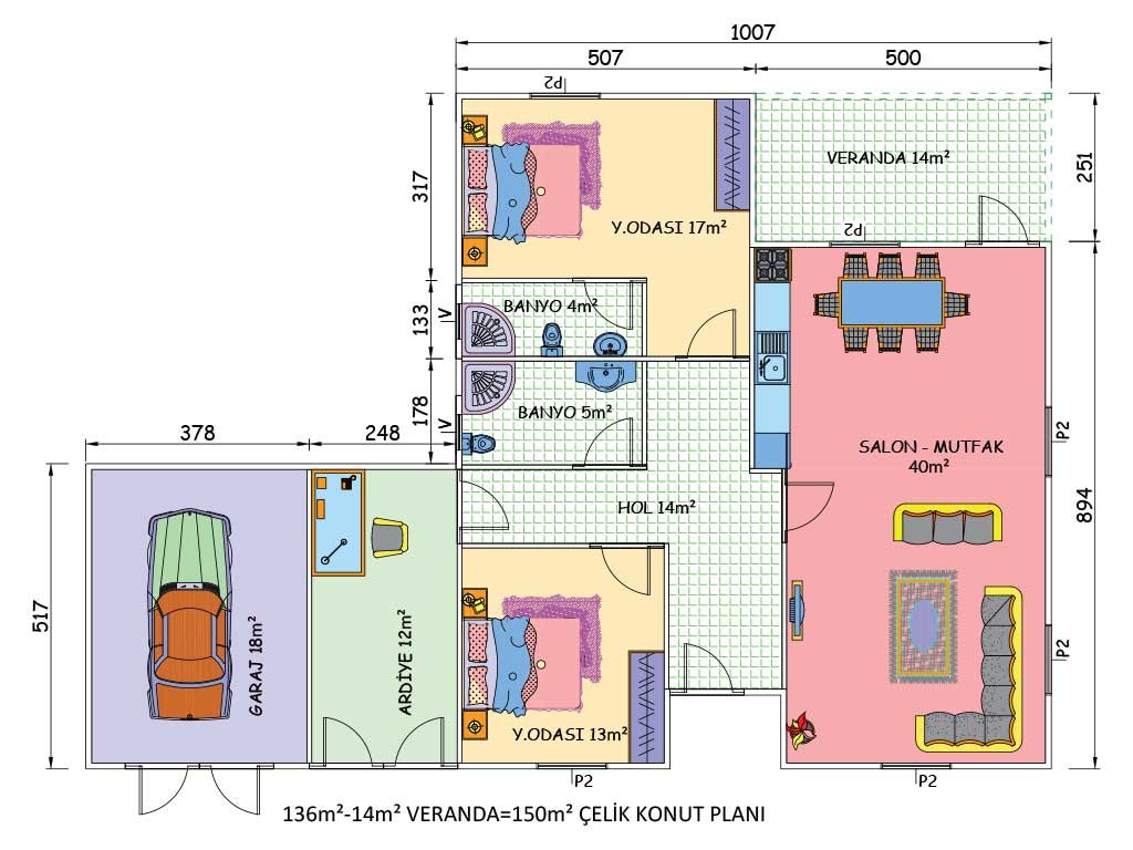 150 متر مربع من المساكن الفولاذية المكونة من طابق واحد