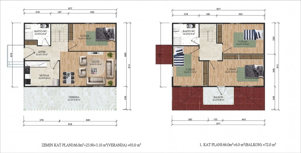 165 متر مربع من المساكن الجاهزة المكونة من طابقين