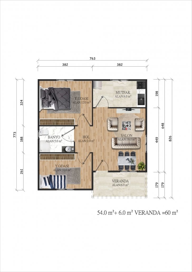 60 متر مربع من المساكن الجاهزة المكونة من طابق واحد